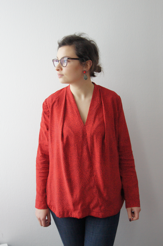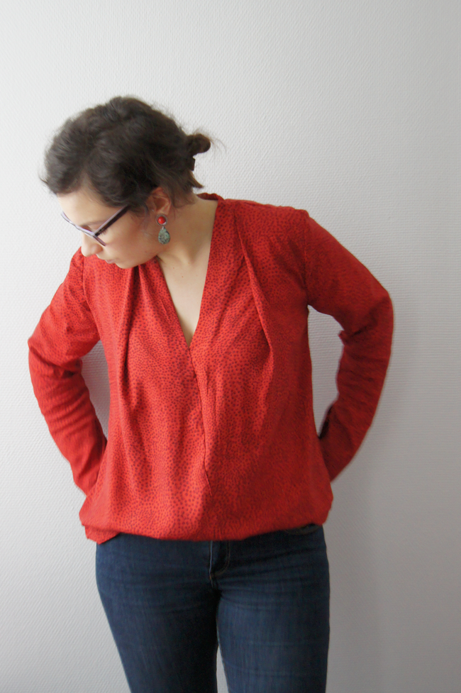Alors, je suis contente d’avoir ton avis sur Billie, je comptais faire cette blouse, haem… dans 6 mois! Portée lâche sans élastique, Billie n’est effectivement pas flatteur du tout, rentrée dans le pantalon par contre j’aime beaucoup. J’aime beaucoup les plis du décolleté et ton choix de tissu <3.
