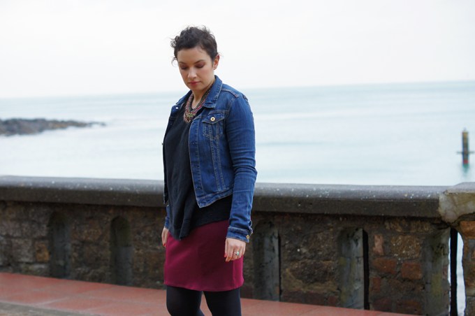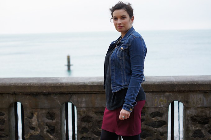 Donc il y a trois semaines je suis rentrée à la maison pour un week-end, le temps de passer derrière la machine et d’en ressortir avec 2 jupes et une robe (trop petite). Aujourd’hui je vous présente la première, la bien connue « Brume ». Les photos ont été prises vendredi à Granville sous la pluie, par maman (merchi <3).