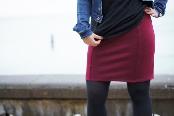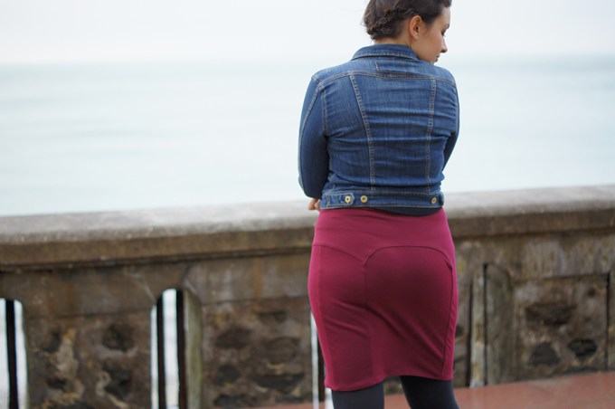 A côté de ça c’est un projet hyper rapide (à peine 1h je dirais, sans le recopiage), la jupe se porte facilement et s’enfile sans problème : c’est un bon petit basique que j’aurais plaisir à refaire (sans doute en noir et avec un tissu plus fin). Bon après il y a toujours la découpe dos qui me donne une impression « cuvette de toilettes » ^^ mais pas au point de m’empêcher de la porter !