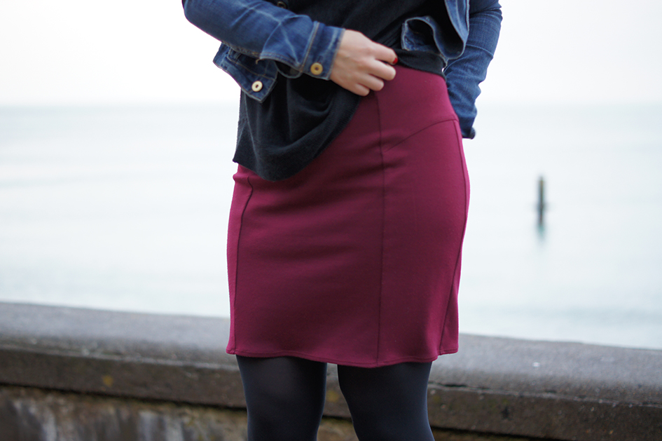 Très jolie couleur ! Pareil, j’ai cousu du D&D quand je me suis remise à la couture mais très vite, j’ai réalisé que c’était pas mon style, comme Colette ou Sewaholic. Sauf cette collection jersey que j’ai trouvé bien avec cette jupe.