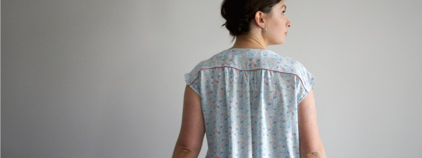 Belles modifications. C’est raffiné et frais. Ce tissu est magnifique. Dommage qu’il se froisse. J’aime vraiment beaucoup cette blouse estivale. Je pense que tu tiens la version parfaite. Tu es exigeante, je trouve que l’ourlet aux manches ne gondole pas tant que ça.