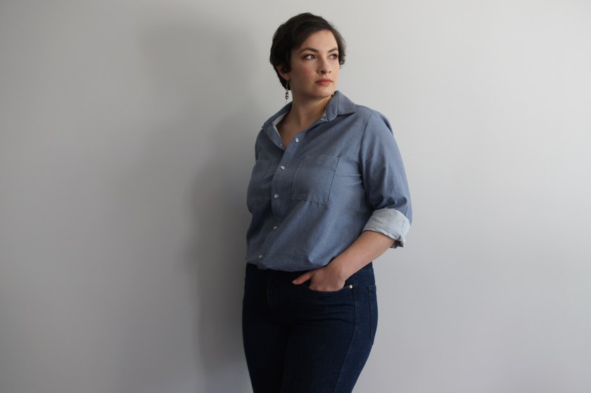 La seule différence entre les deux, c’est que pour la première fois, sur ma version chambray, j’ai fait un ajustement au niveau des épaules « narrow shoulders ». Ce qui est une grande première sur ce patron. J’ai également mis les poches poitrines mais bon, je suis assez mitigée sur le résultat, je trouve que ça donne l’impression que le tissu tire de partout et que c’est trop petit au niveau de la poitrine …